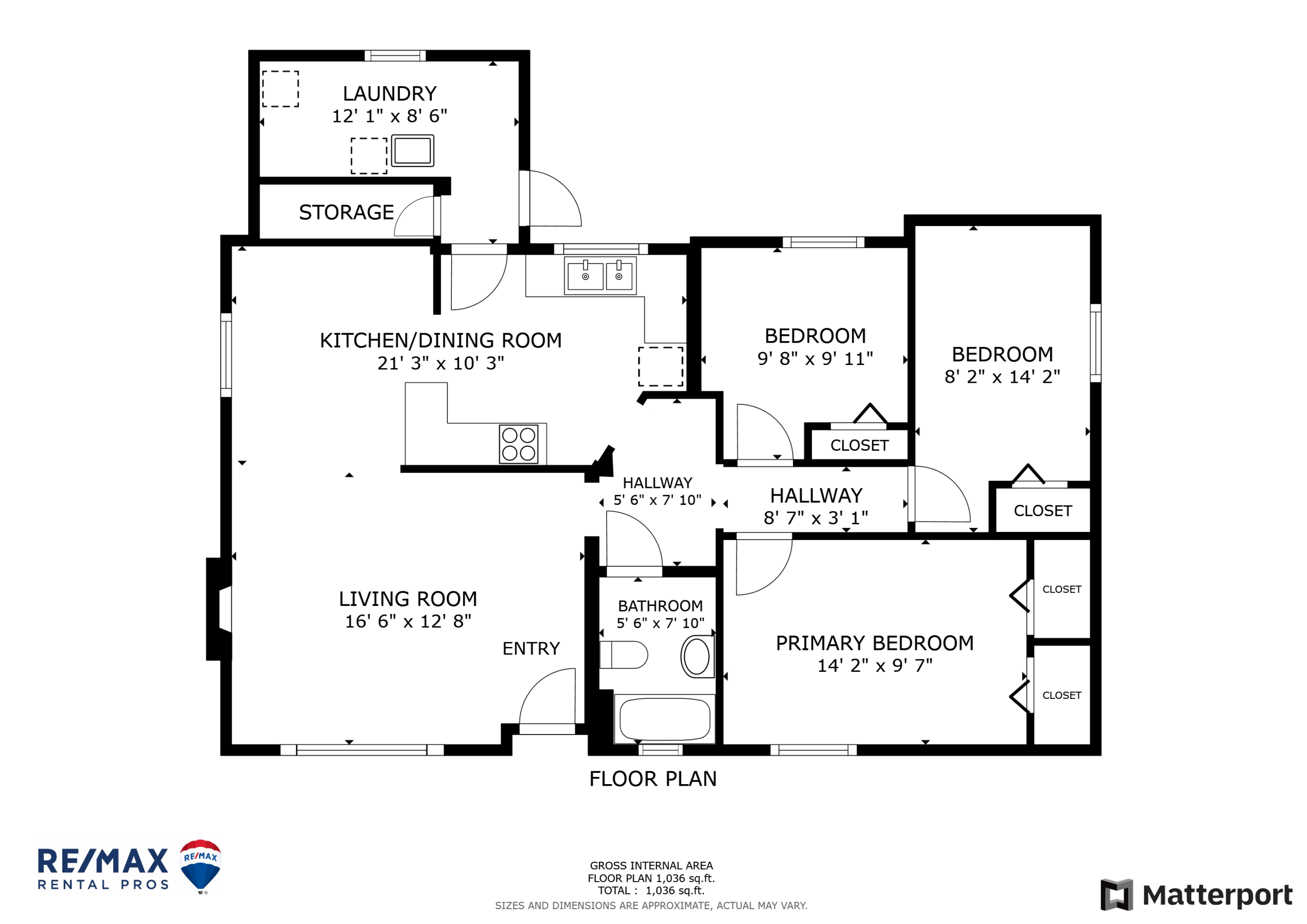 Approximate Square Footage: 1036